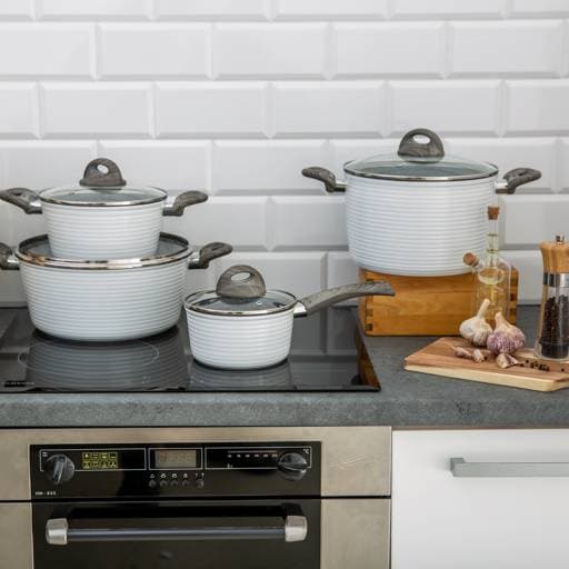 Die Wavy-Kollektion der Marke Ambition kombiniert Funktionalität und einzigartiges Design. Die helle Farbgebung und die geriffelten Wände der Töpfe und Pfannen im Soft-Loft-Stil fügen sich perfekt in eine moderne Küche ein. Die verwendete Beschichtung Qualum Basic Stone Edition imitiert Stein und bietet antihaftende Eigenschaften, die gesundes Kochen und die Reinigung der Gefäße erleichtern. Töpfe und Pfannen haben einen dicken Boden mit vollständiger Induktionstauglichkeit, wodurch sie schneller erhitzen und die Wärme gleichmäßig verteilen, wodurch Zeit und Energie gespart werden.
