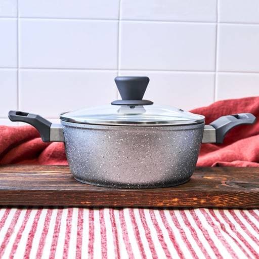 Topf mit Deckel mit Qualum Basic Stone Edition Silverstone Beschichtung