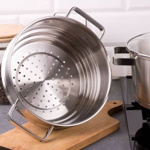 Der Dampfgareinsatz Selection Ambition ist eine praktische und funktionale Lösung für Personen, die gesunde und köstliche Mahlzeiten schätzen. Hergestellt aus Edelstahl, passt er zu Töpfen mit einem Durchmesser von 20, 22 und 24 cm. Damit können Sie auf einfache Weise Gemüse, Fisch oder Teigtaschen zubereiten, ohne die Nährwerte und den natürlichen Geschmack zu verlieren. Solide Griffe erleichtern das sichere Tragen, und das klassische Design fügt sich perfekt in jede Küche ein.