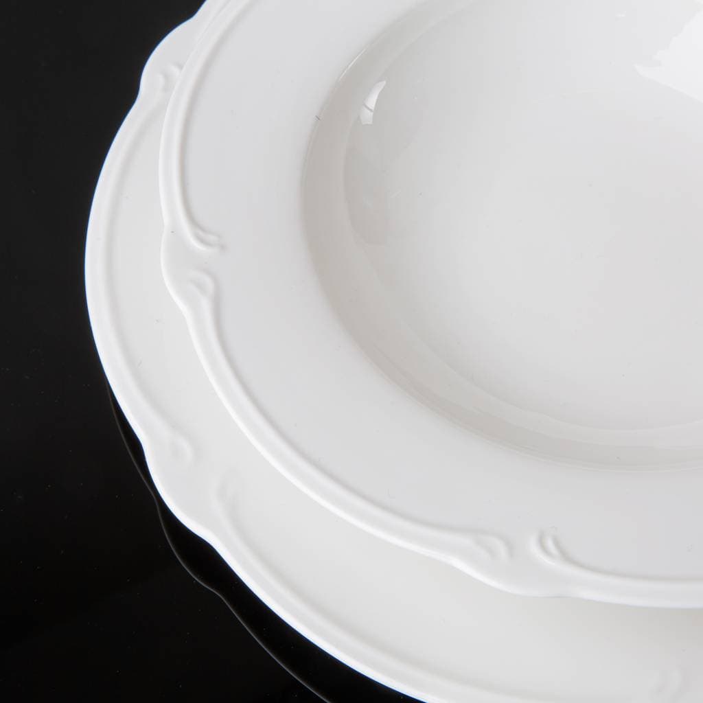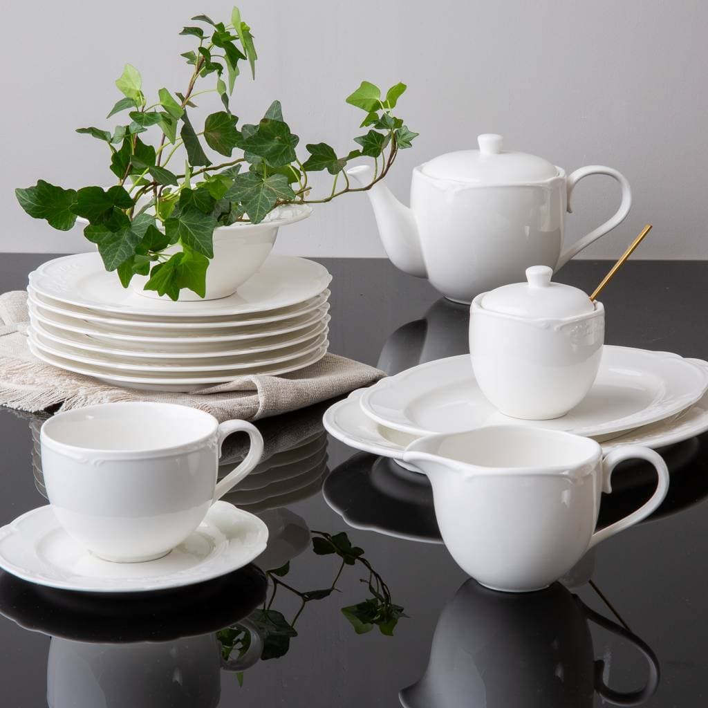 Der sanfte Weißton dieses Tafelservice verleiht dem Tisch Leichtigkeit und passt zu modernen wie klassischen Einrichtungsstilen. Er bringt Helligkeit und Harmonie in jedes Ambiente.