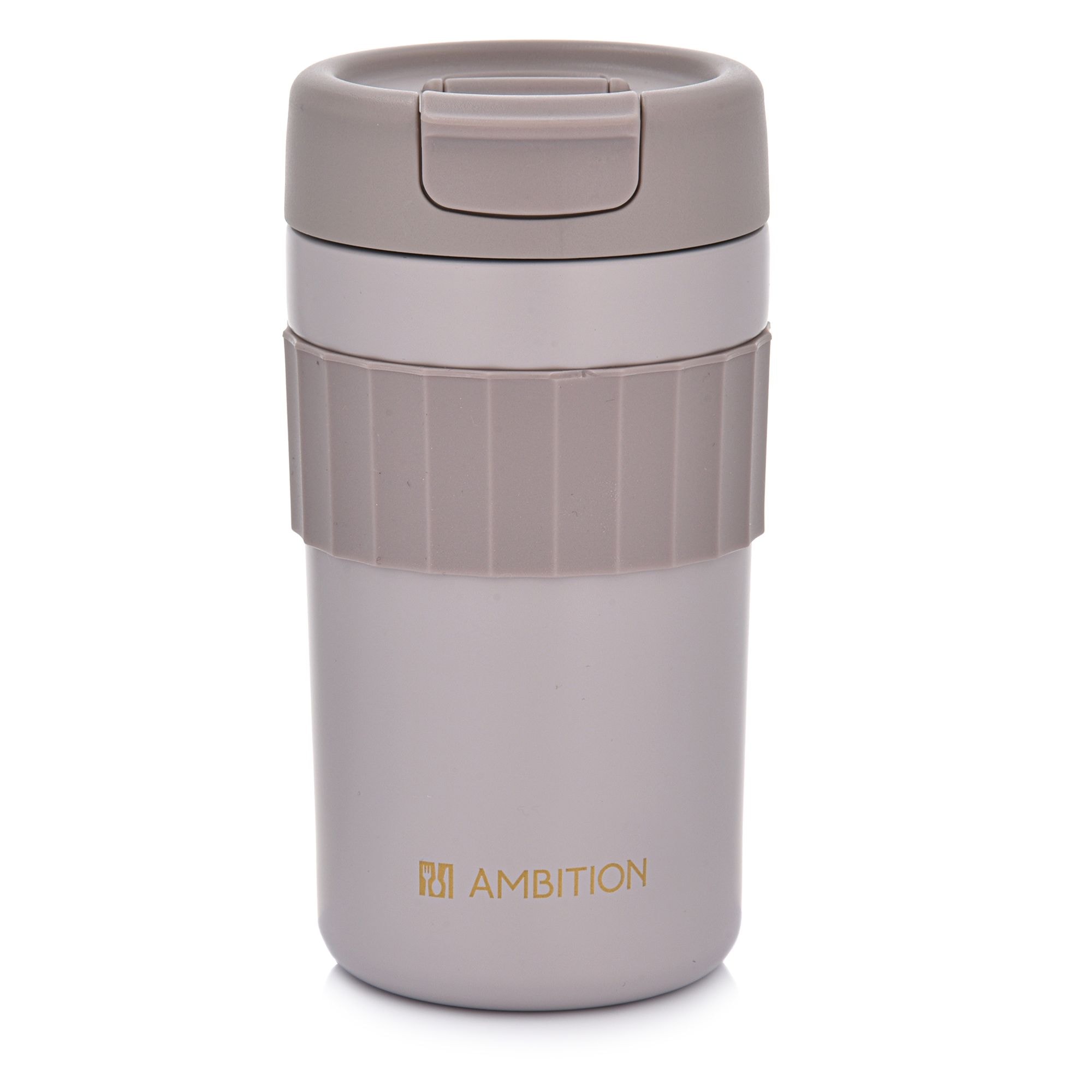 Beispiel: Thermobecher von Ambition verfügen über eine Doppelwand mit Vakuumisolierung und können ein heißes Getränk bis zu 6 Stunden warm halten.