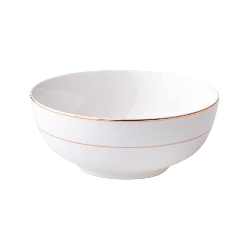 Feine, goldfarbene Linien verleihen der Schüssel einen luxuriösen Charakter und betonen ihre elegante Ausstrahlung. Dadurch wird sie zum Blickfang auf jedem gedeckten Tisch.