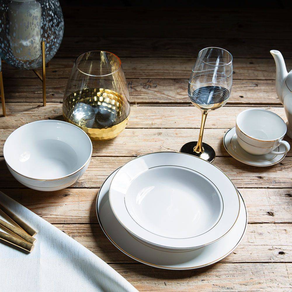 - Design: zeitloses glänzendes Weiß der Porzellan New Bone China kombiniert mit dezenten goldenen Linien