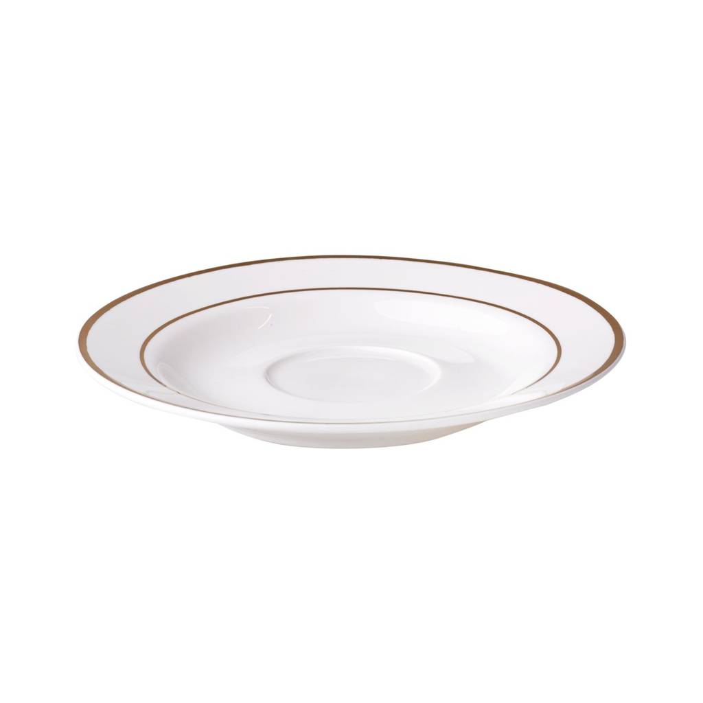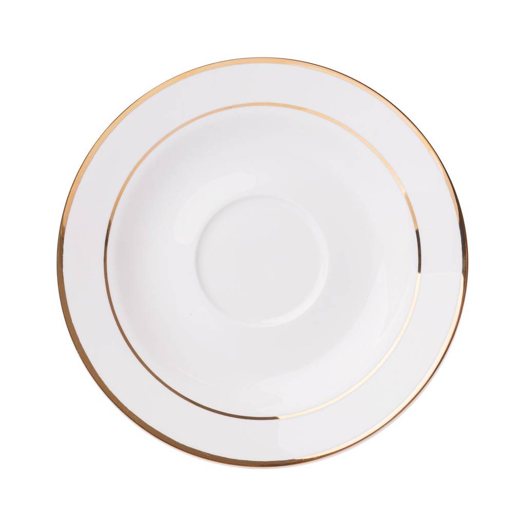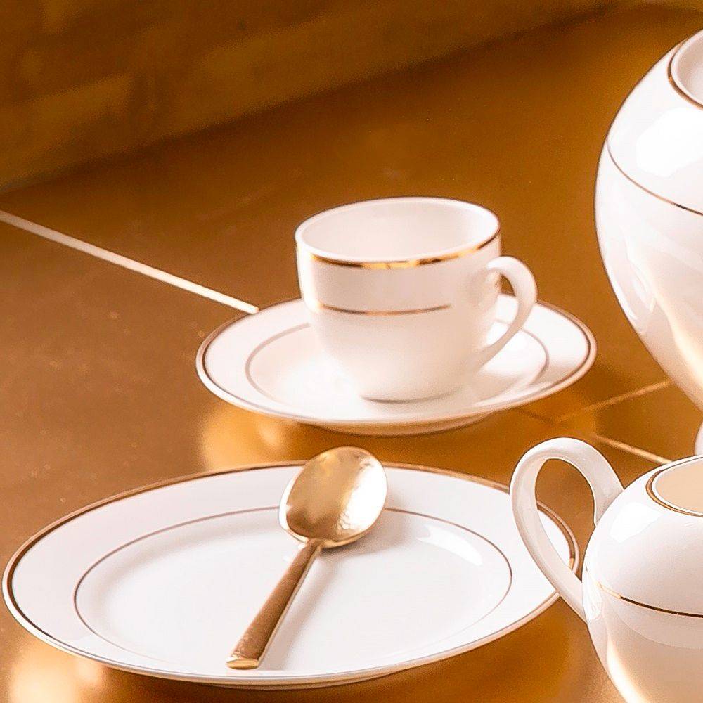 Die dezenten Verzierungen betonen den luxuriösen Charakter des Geschirrs, ohne dessen Design zu überladen. So wirkt die Untertasse für Tasse edel und zugleich zurückhaltend.