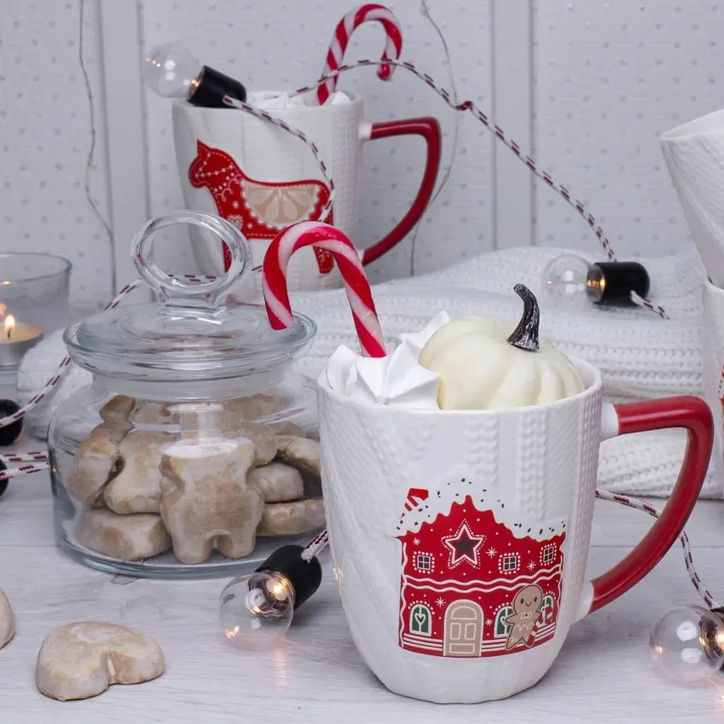 Der morgendliche Kaffee im Dezember schmeckt ganz anders, wenn man ihn aus seiner Lieblingstasse mit Weihnachtsmotiven trinkt. Sie zeichnen sich durch klassische Farben aus, die uns an diese erstaunliche Zeit erinnern wie tiefes Rot, Weiß, Grün und Gold sowie durch subtile Drucke: Rentiere, Lebkuchen, Weihnachtssterne oder Schriftzüge wie „Hello Winter“. Solche Tassen bringen nicht nur Magie in die Feiertage, sondern schaffen auch eine gemütliche Atmosphäre, die hilft, jeden Morgen den Weihnachtsgeist zu spüren.
