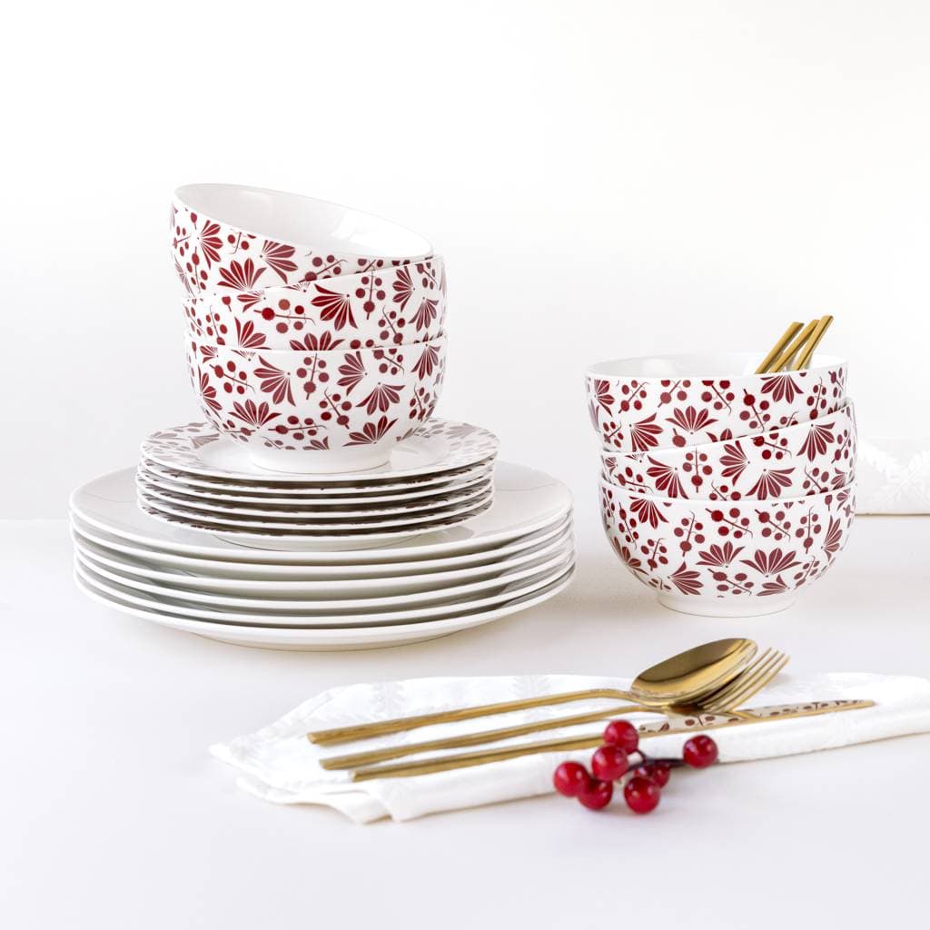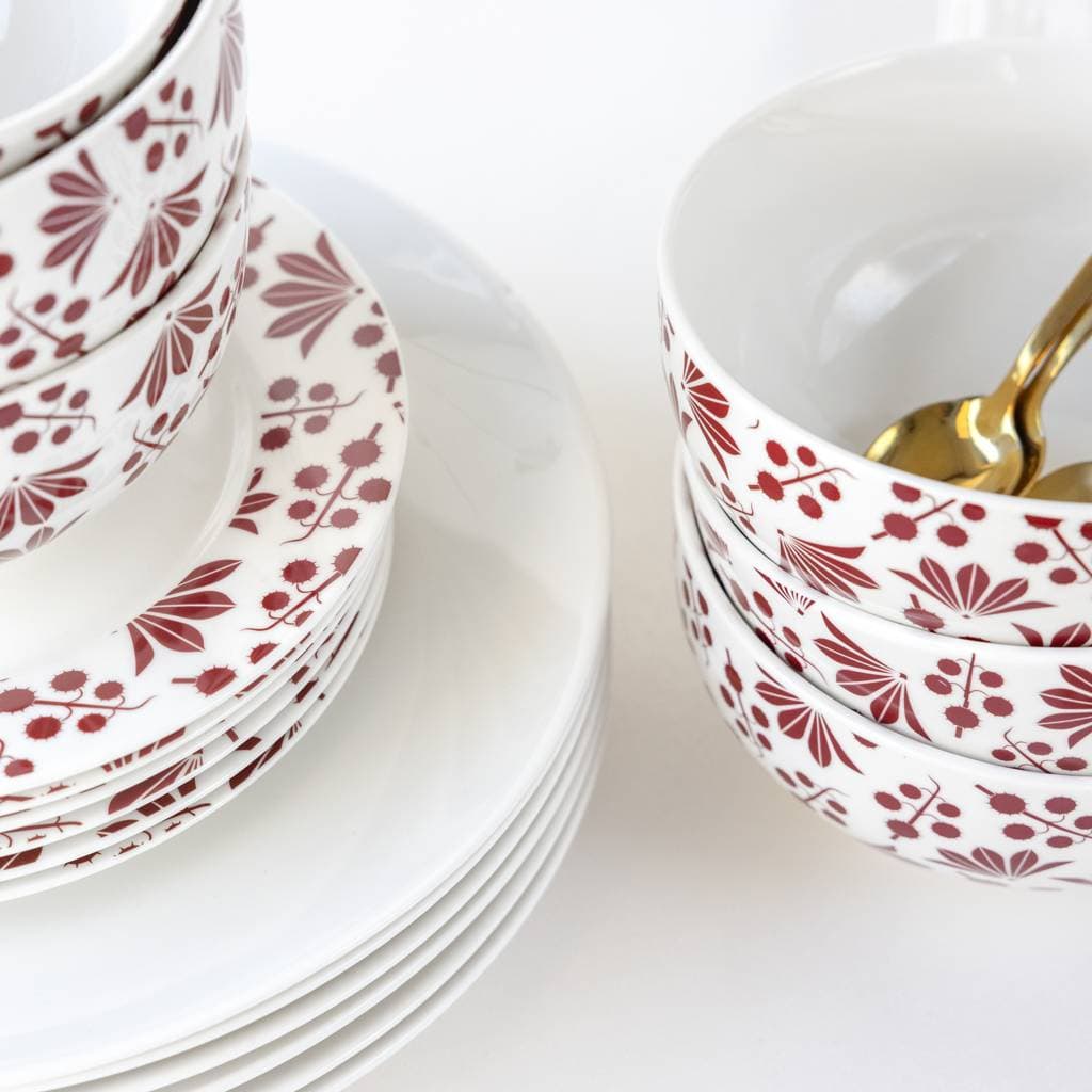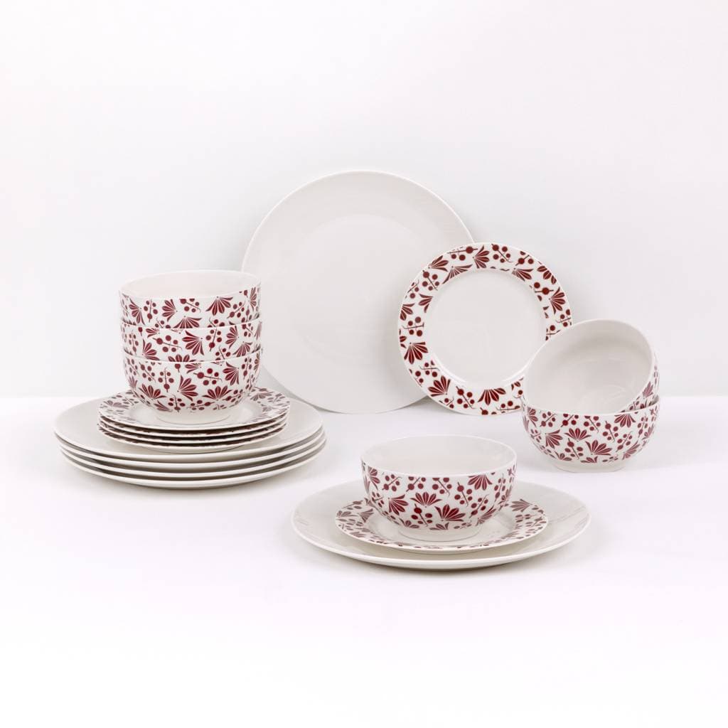 • White-red dinner set Rubi Bona: 18-piece set for 6 people with a cohesive, elegant style
