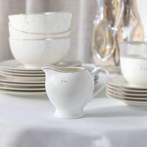 Gold dots and subtle rim appear on every element of the set. Thanks to this, the whole creates a harmonious and elegant composition.