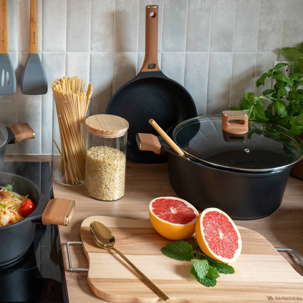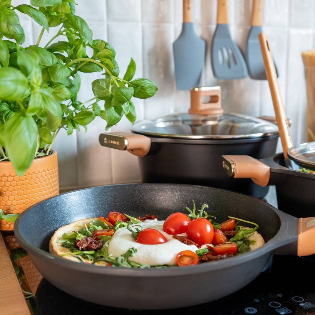 The set includes pots and pans in various sizes, allowing you to prepare full meals, from appetizers to larger dishes, with one move. Thanks to this, the set is perfect for any kitchen and various dishes.