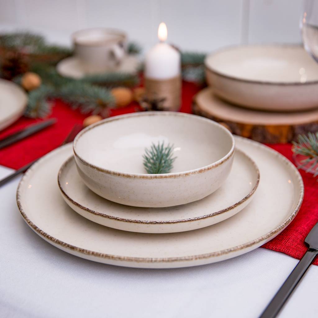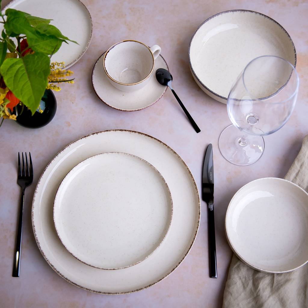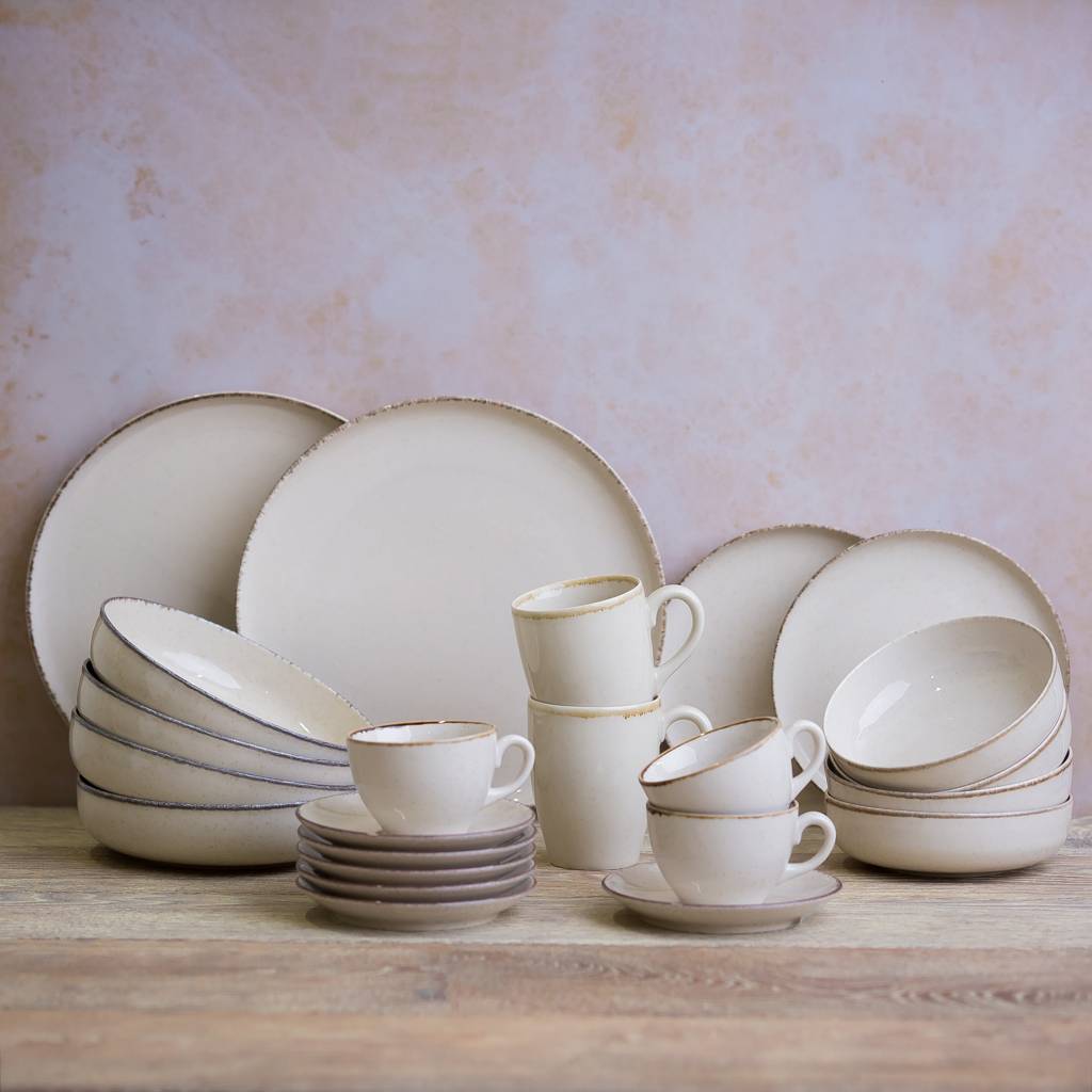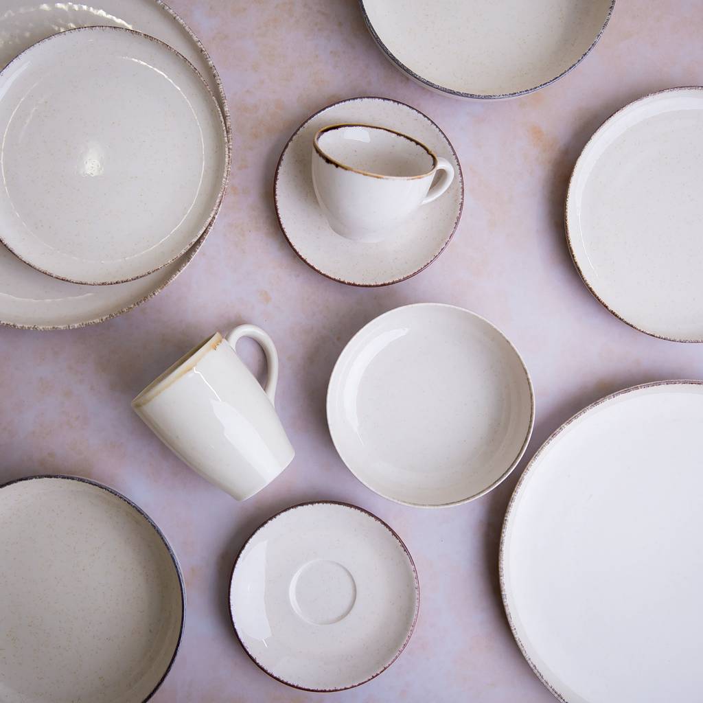 • Dinner set made of glazed porcelain Craft: collection with a modern, natural expression