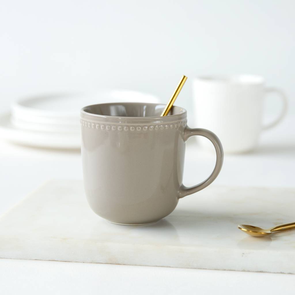 Delicate beads adorning the upper edge of the mug give it a subtle, decorative look. This detail distinguishes the mug from others and makes it look exceptional both alone and in a set.