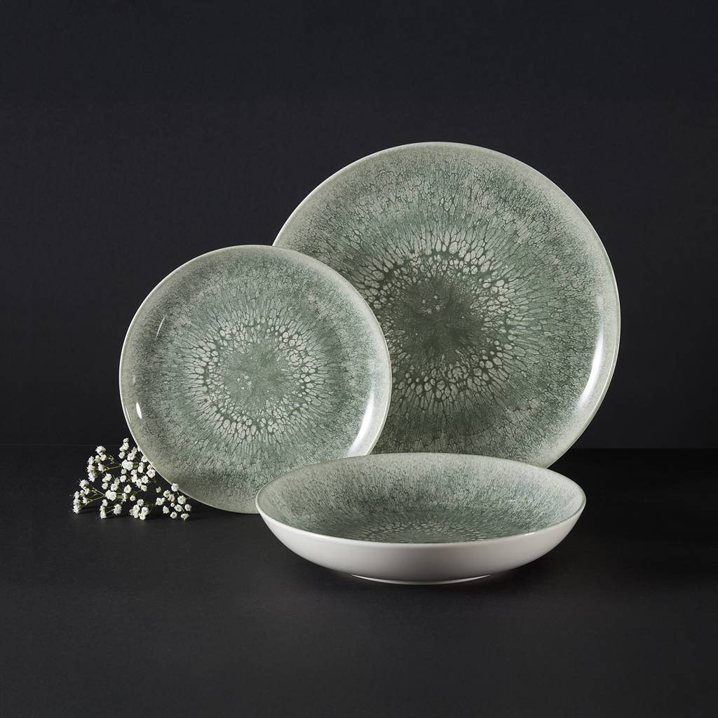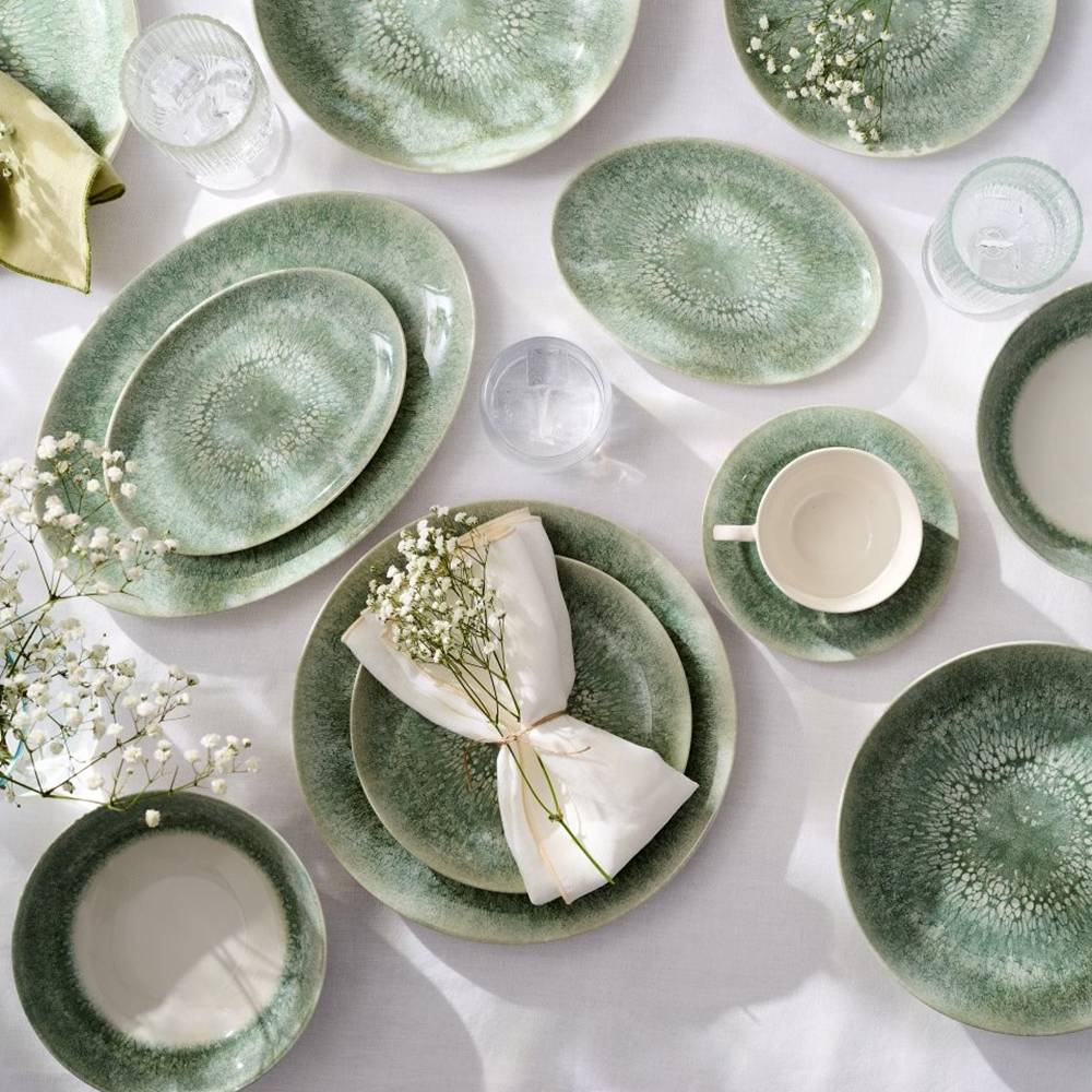 The shade inspired by nature adds lightness and harmony to the arrangement. It is an excellent base for modern and classic table settings.