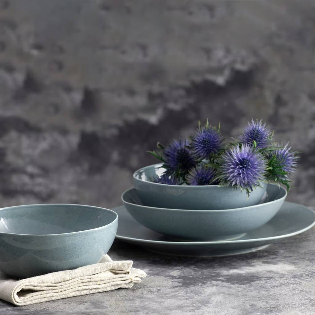 The calm hue of the bowl harmonizes with various table setting styles, adding coziness.