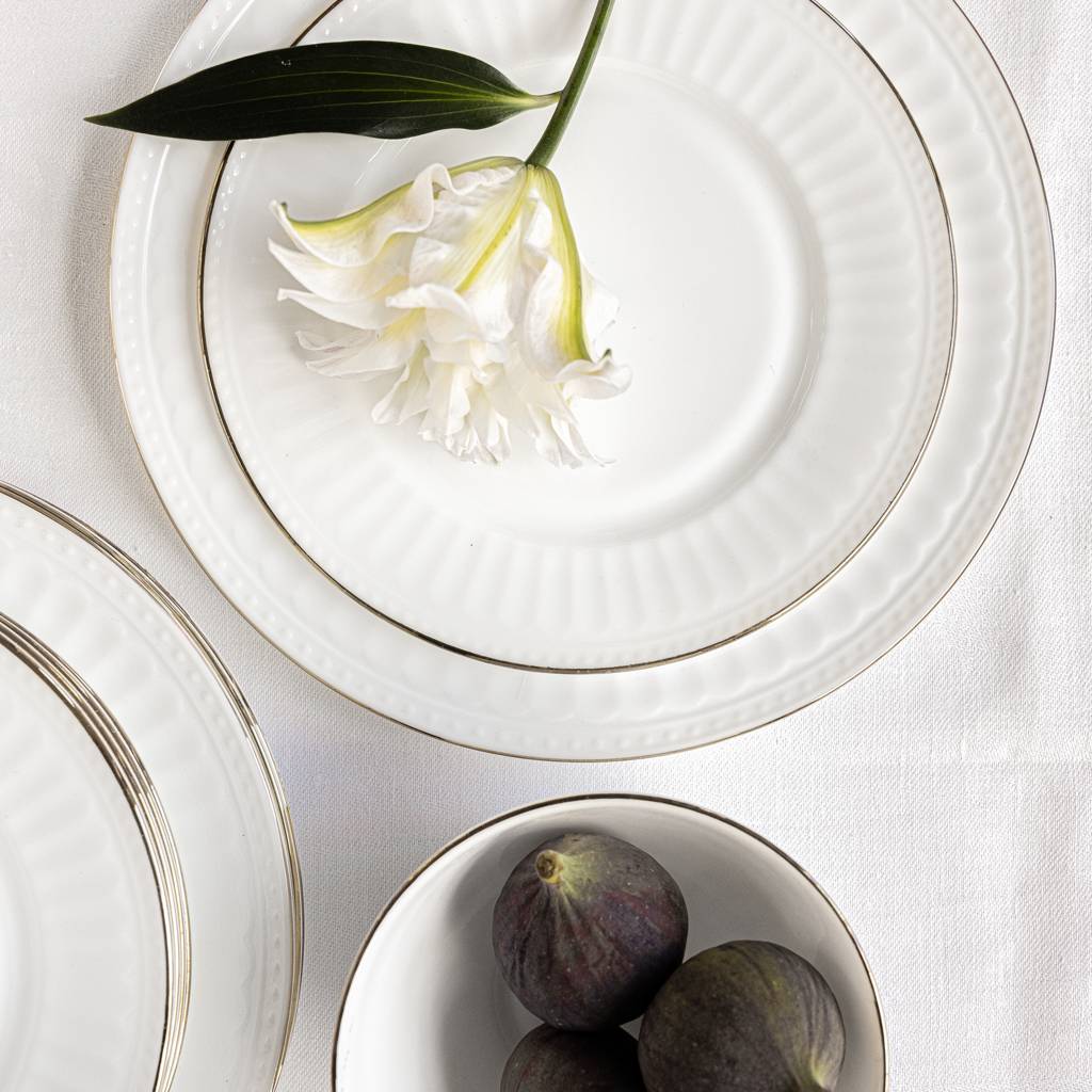 The golden rim of the salad bowl introduces a touch of elegance, highlighting the uniqueness of the dishes served