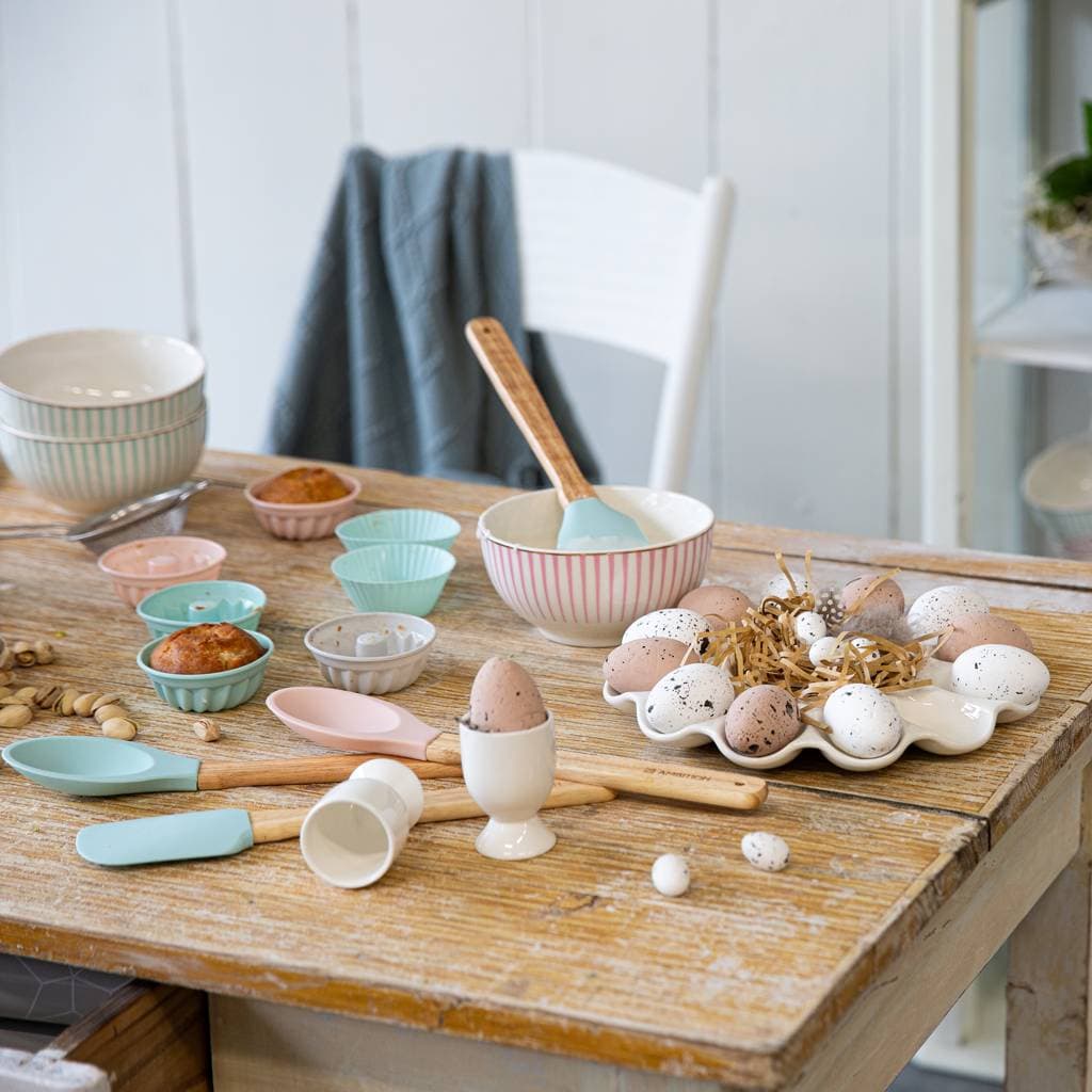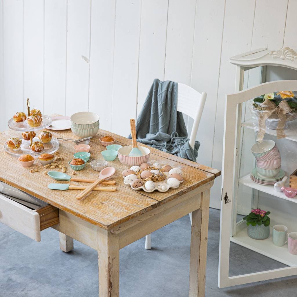 Delicate, pastel colors combined with a wooden handle introduce a light and pleasant touch to the kitchen decor.